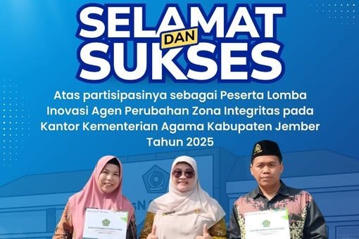 Jember (Humas MTsN 2 Jember) – Semangat inovasi dan kepedulian lingkungan di lingkungan Kementerian Agama Kabupaten Jember mendapat apresiasi tinggi dari Dr. Santoso (Kepala Kemenag Jember). Hari ini, Rabu (17/9), dalam sebuah apel yang berlangsung khidmat di Aula Kantor Kemenag, dua sosok inspiratif yaitu Qurotulaini, M.Pd. (Guru IPA) dan Harianto, S.Pd.I (Guru Akidah Akhlak) dari MTsN 2 Jember menerima penghargaan ASN Inovator yang menjadi bagian dari Agen Perubahan PMPZI Kantor Kemenag Jember. Diantara 30 ASN Inovator, Qurotulaini M.Pd, selaku ketua program inovasinya “Gerpusari” berhasil menjadi bagian dari tim Agen Perubahan di lingkungan Kementerian Agama Kabupaten Jember. Sedangkan, Harianto S.Pd.I. mengembangkan aplikasi HABSAJI (Habituasi Shalat dan Mengaji) dengan sasaran siswa/siswi MTsN 2 Jember selama di rumah.