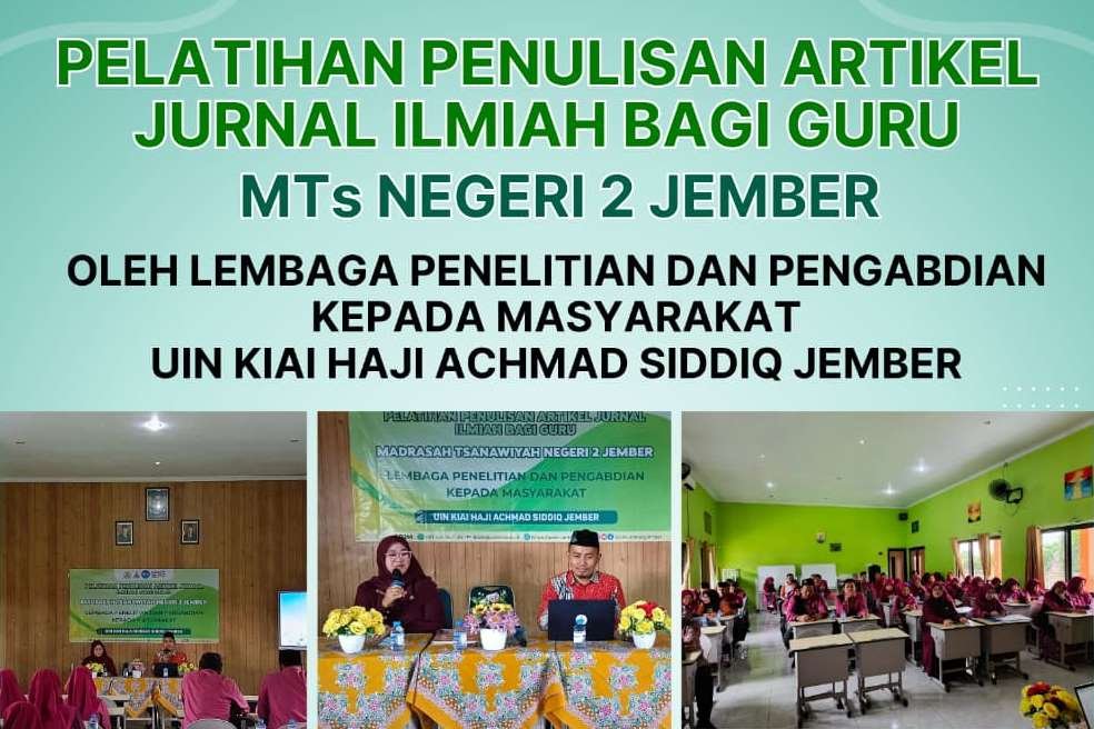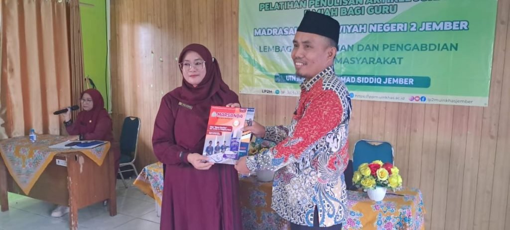 Pelatihan tersebut bertujuan meningkatkan kompetensi guru dalam penulisan karya ilmiah sekaligus mendorong pengembangan keprofesian berkelanjutan melalui publikasi jurnal. Kepala MTsN 2 Jember, Dr. Hj. Nur Aliyah, M.Pd, menyampaikan bahwa kegiatan ini merupakan anugerah dari Allah SWT serta bentuk dukungan nyata dari UIN Kiai Haji Achmad Siddiq Jember bagi pengembangan profesionalisme guru. “Kami berharap jurnal di MTs bukan hanya untuk kepentingan jabatan atau administrasi. Lebih dari itu, jurnal menjadi sarana pengembangan keilmuan. Harapan kami, dari kegiatan ini lahir produk nyata berupa artikel ilmiah guru,” ujarnya.